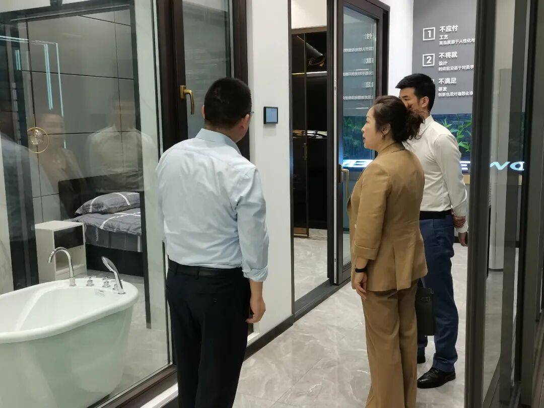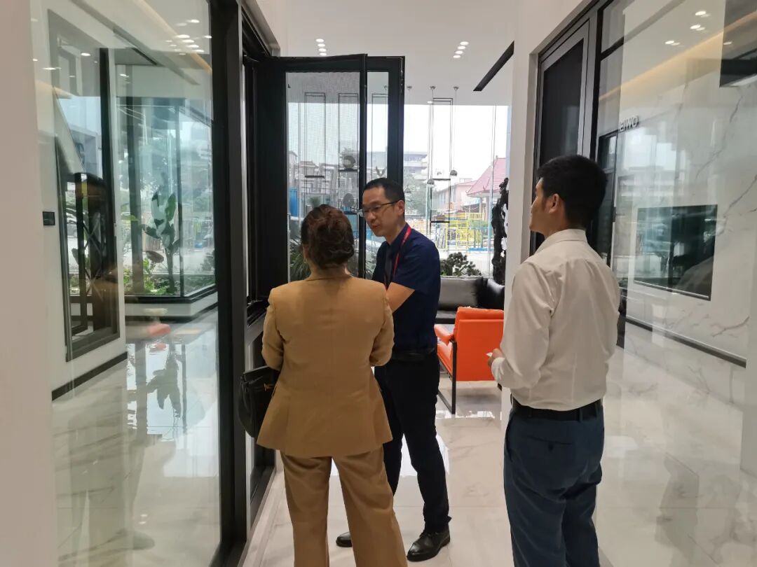 在美沃门窗领导的陪同下,梁秘书长参观了佛山总部实景展厅,并就中国家装、工装领域以及门窗行业的发展趋势及未来前景进行了深入探讨。